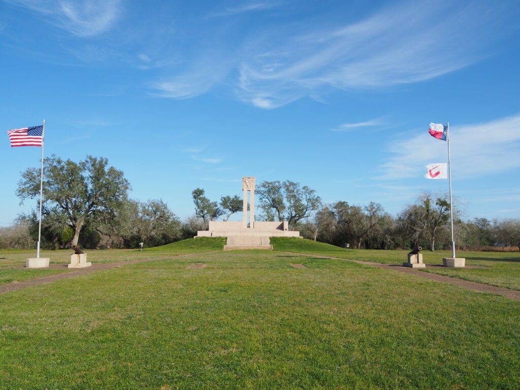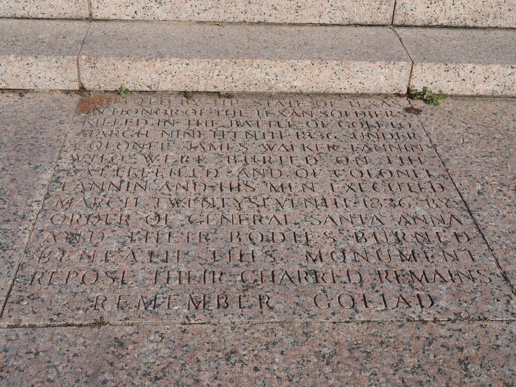 The Zaragoza Birthplace is in Goliad, TX, located a mile or so south of Goliad State Park. It is free to enter and sits just outside Presidio La Bahia. On the same block is a statue of Zaragoza with a few information boards. A short walk away from the presidio is a statue dedicated to the Angel of Goliad and a memorial to Fannin’s Men. Both are worth checking out. Unfortunately, La Bahia wasn’t open when we visited, although we were there during business hours. There is an admission fee. It costs $5 per adult, $4.50 per senior, $2 per child, and children 6 and under get in for free.